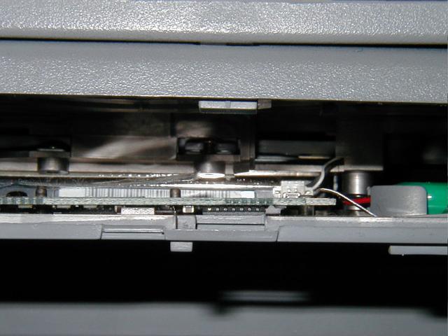 このサブ基板はサウンドボードらしく、ケーブルはスピーカにつながってるらしい。まあ、そんなのはなくてもかまうものかということで、マイクロニッパでぶったぎることにする。 これで蓋は十分に開くようになる。