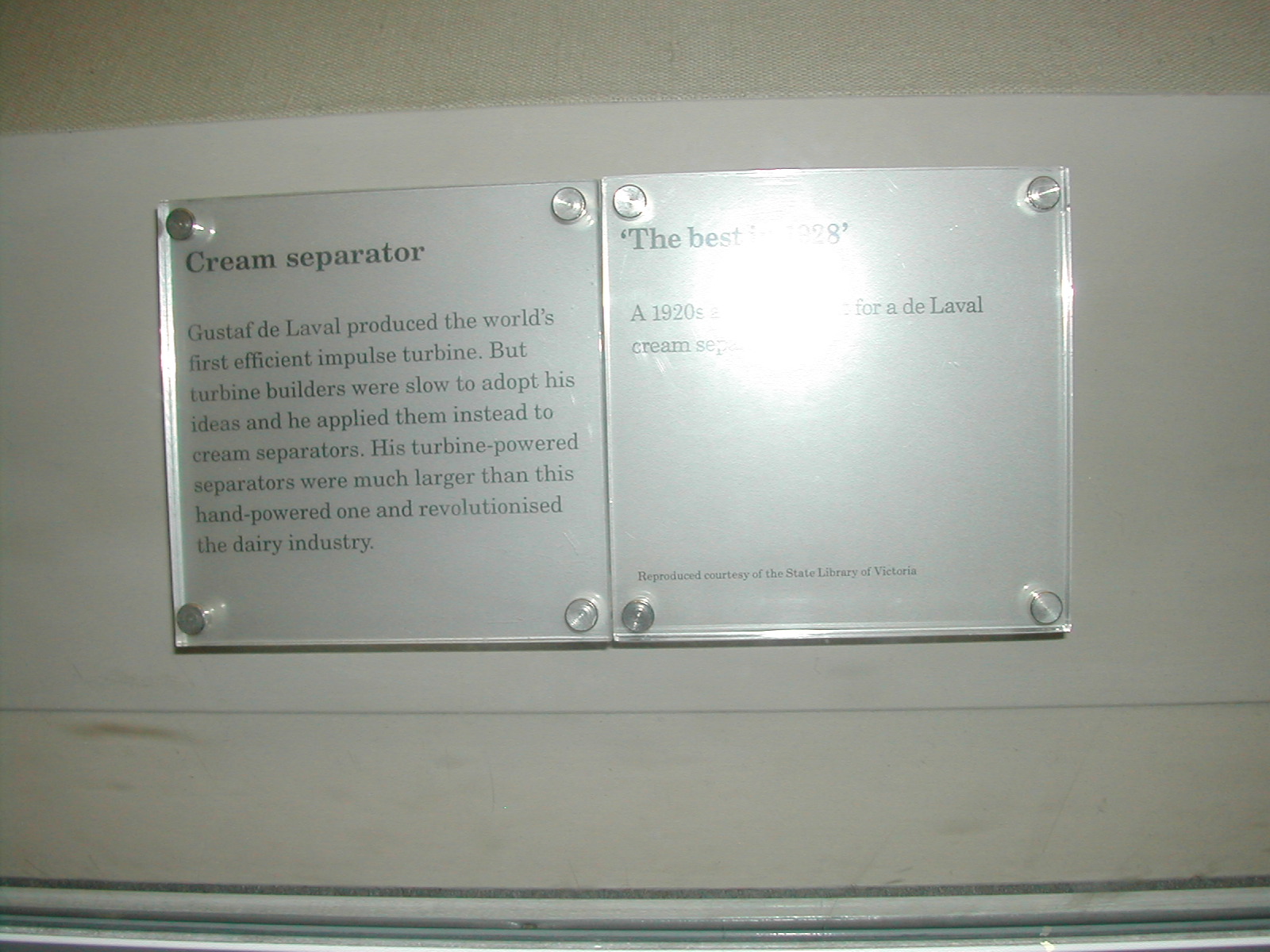 パワーハウス博物館で、ド・ラバールの蒸気タービンミルク分離機の広告