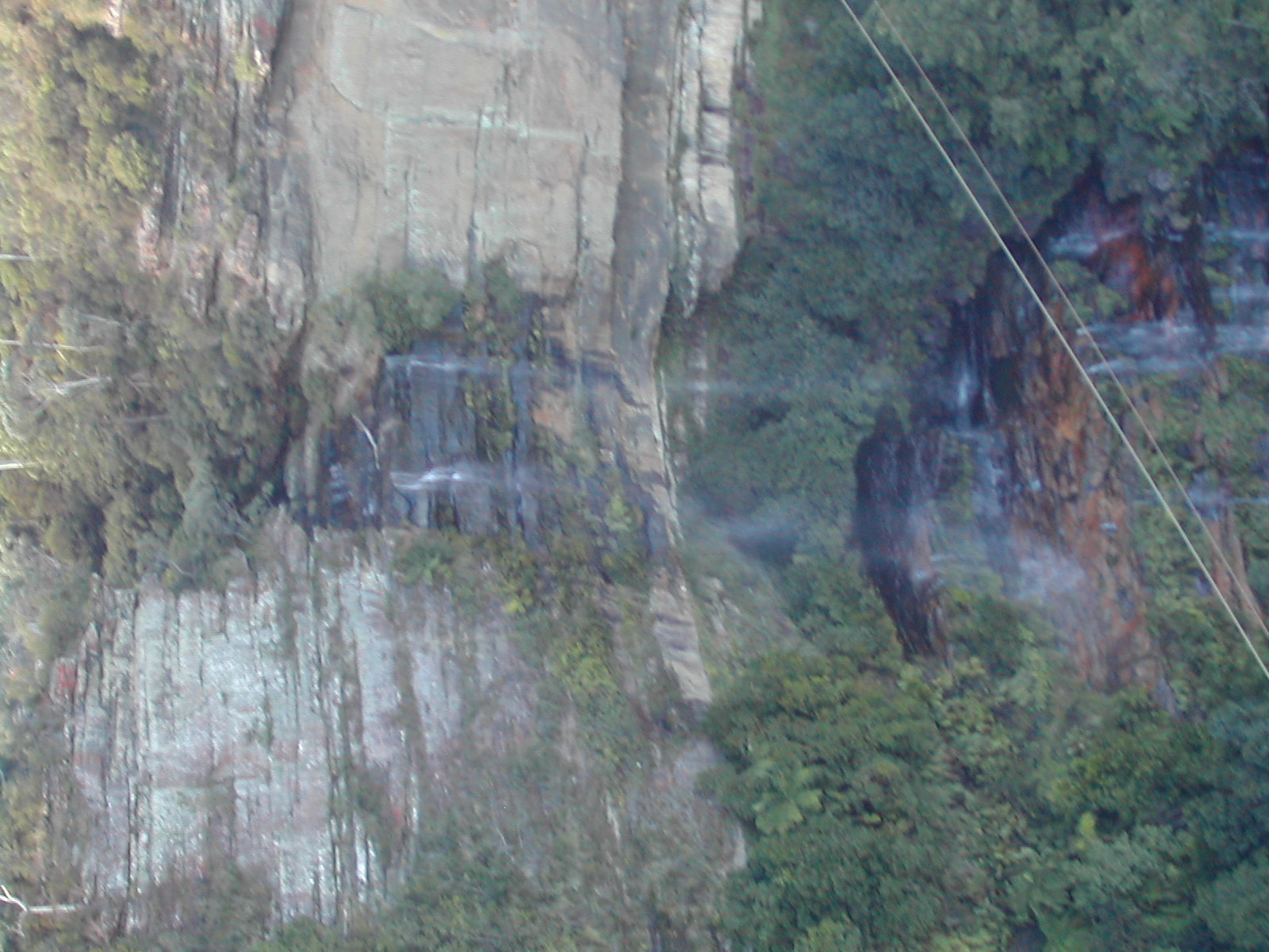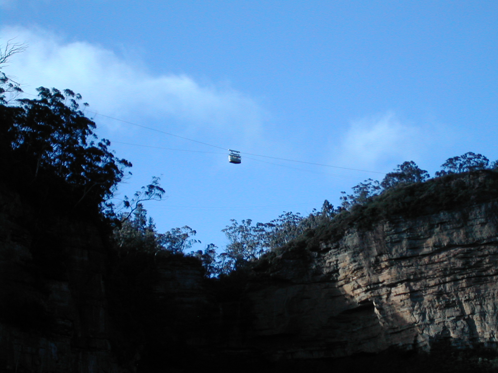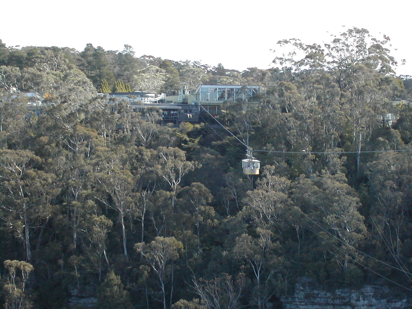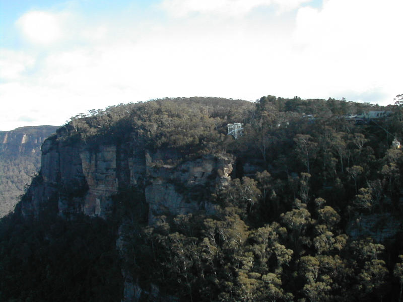 Scenic World からでている SkyWay というロープウェイを、Scenic World の 反対側からとった写真。この SkyWay というのは実は反対側には乗り場はなく て、真ん中までいってそのまま戻るという素敵な仕掛けだった。