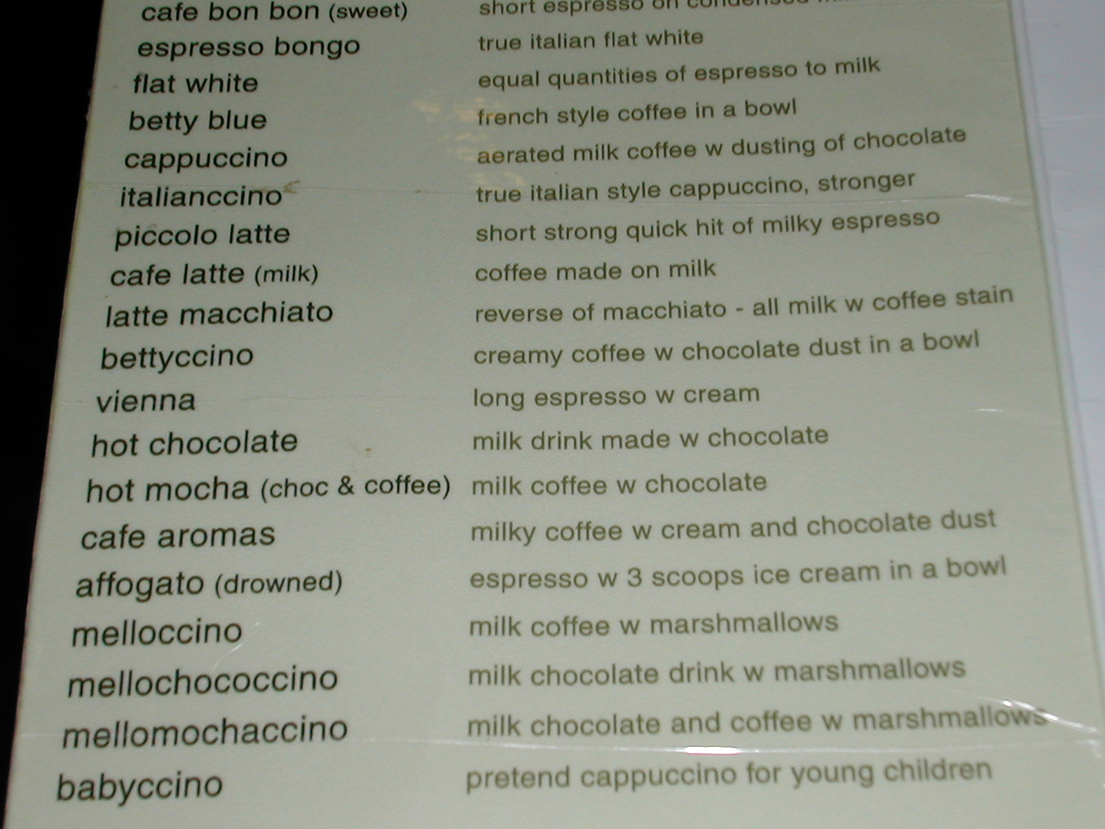 空港にあったコーヒー屋のメニュー(3)