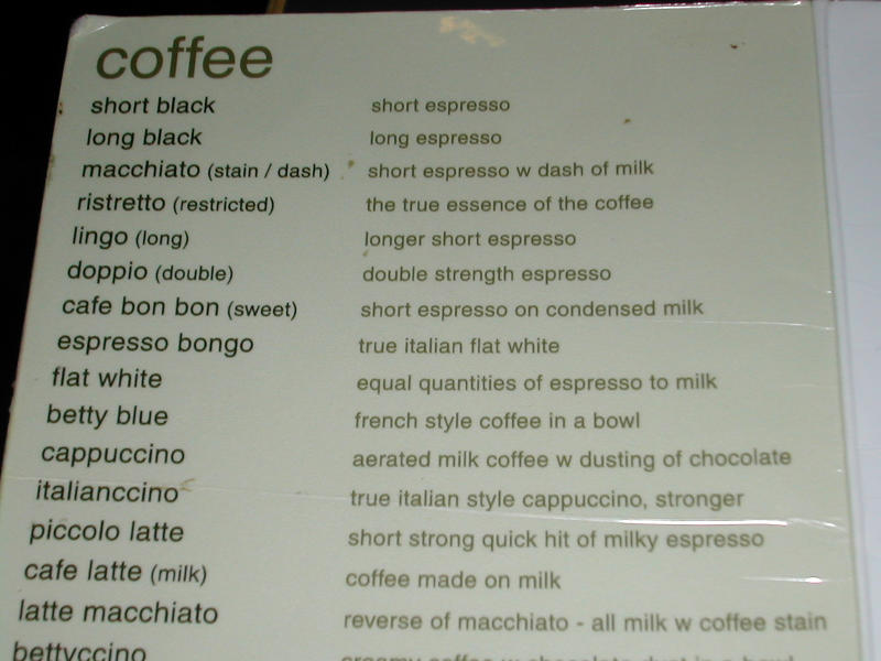 空港にあったコーヒー屋のメニュー(1)
