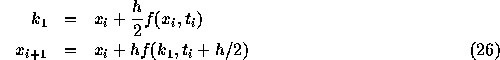 ルンゲ・クッタ法というのは、ある一般的な形に書ける公式のクラスであるが、 ちょっとわかりにくいのでまず例をあげておこう。