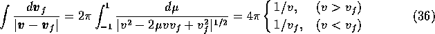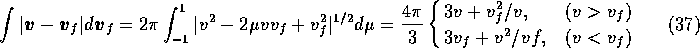 ここで、 はフィールド粒子の速度、 fは速度分布