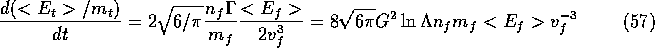前節では、実際にバックグラウンドの粒子も動いている場合について、2体緩和 によって粒子の速度、エネルギーがどう変化するかの期待値(のモーメント) を求めた。ここでは、前回の結果を使って、まずいくつかの重要な場合について 2体緩和がどのように働くかを議論する。
