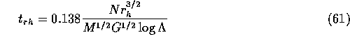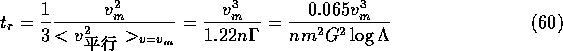 さて、通常「2体緩和のタイムスケール」という時には何を指してい るかというと、この等分配のタイムスケールのことではないのが普通である。 が、時と場合によっていろんなものが出てくるが、まあ同じようなものである。 普通に使われるのは、